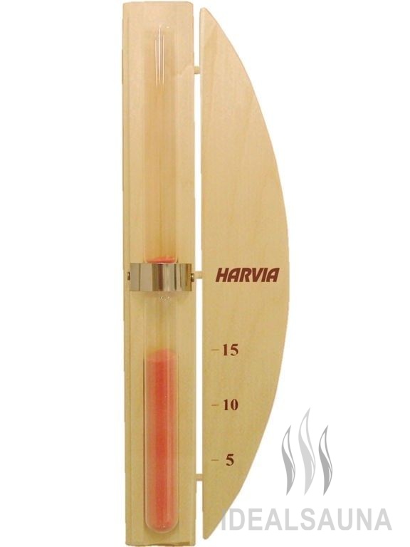 Колба с розовым песком на деревянной подложке изогнутой формы с отметками времени на 5, 10 и 15 минут.