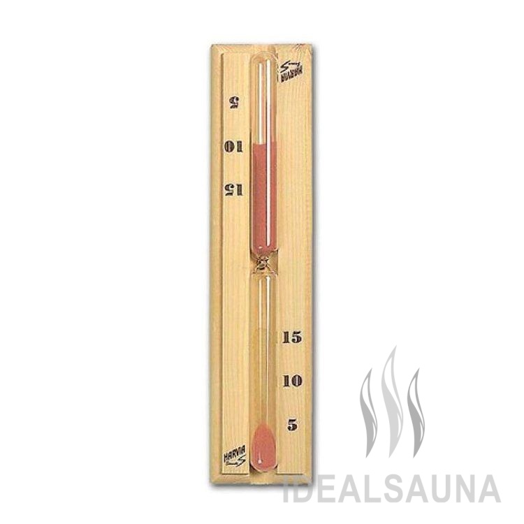 Песочные часы используют для измерения интервалов времени проведенных в парилке. Данная модель рассчитана на 15 минут с промежуточными отметками на 5 и 10 минут.