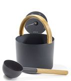 Черпак и бадья, а также минималистичный термометр. Изготовлено из алюминия. Черпак и бадья оборудованы бамбуковыми ручками. Они не смогут сделать ваш поход в баню экстраординарным и не светятся в темноте. Просто бадья, черпак и термометр, просто круто выглядит.