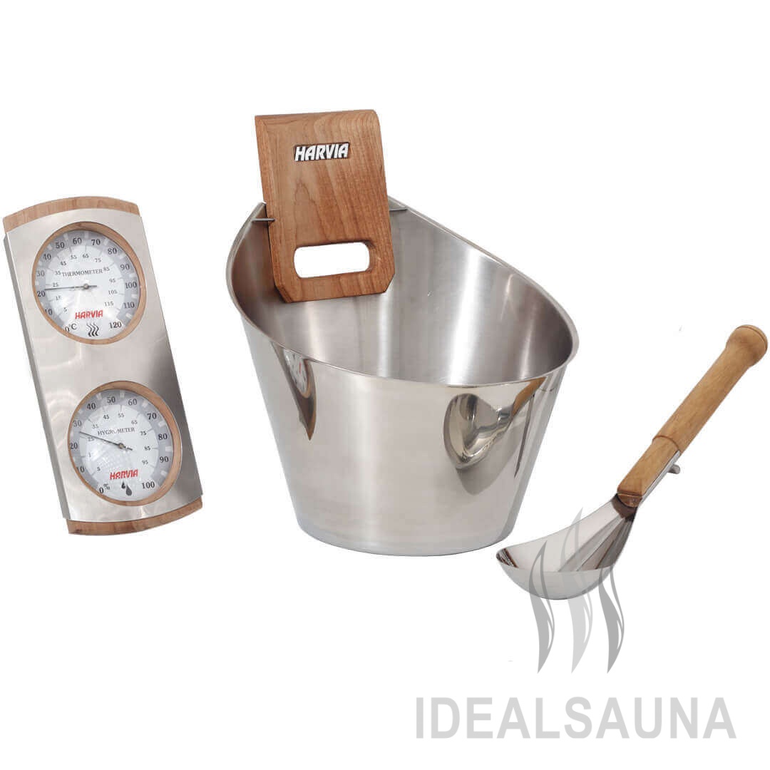 Набор Harvia (ушат + черпак + термогигрометр) Steel
