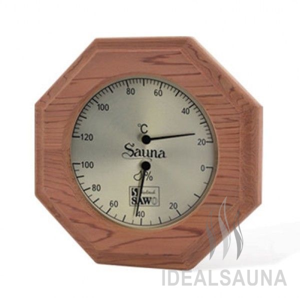 Термогигрометр 241-THA от компании Sawo имеет оригинальную форму равностороннего восьмигранника. В широкой рамке из древесины осины находится большой, круглый, графичный циферблат. Циферблат разделён на две шкалы. Одна из них - это гигрометр, который с точностью измерит уровень влажности, другая - термометр, который сообщит о температуре воздуха. Данный прибор прекрасно подойдёт для использования в парной. Благодаря универсальному дизайну он станет прекрасным дополнением любого интерьера. В нашем интернет-магазине представлен широкий ассортимент измерительных приборов в корпусах из разных видов древесины. Вы можете купить по привлекательной цене модель 241-THA или присмотреться к другим вариантам.
