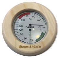 Баня - место для отдыха, оздоровления и получения удовольствия. Чтобы результат посещения был положительным и не был нанесен вред здоровью и самочувствию, необходимо знать показатели влажности и температуры воздуха. Для постоянного контроля влажности и температуры отлично подойдет термогигрометр. Совмещенные термометр и гигрометр для бани позволят точно отслеживать Вам температуру и влажность воздуха, тем самым сделав Ваш отдых безопасным и комфортным. Измеритель влажности воздуха и без ртутный термометр позволят поддерживать Вам показатели, подходящие для русской бани, турецкой бани и финской сауны. Цветовые шкалы и крупные цифры позволят Вам с легкостью определить нужную температуру и влажность воздуха. Банная станция прекрасно впишется в интерьер бани или сауны благодаря деревянному корпусу, который выполнен из дуба. Достоинствами данного материала являются влагостойкость, износостойкость и экологичность. Для точности определения температуры и влажности воздуха термометр в баню следует размещать вдали от источников тепла или холода (входных дверей, окон, печи) иначе это может сказаться на показаниях прибора. Термометр банный создан для поддержания комфортной температуры и оптимального микроклимата в Вашей парилке. Термостойкое стекло защитит графичный циферблат от повреждений. Стрелочный термометр не нуждается в дополнительных источниках питания, имеет минимальную погрешность измерений и прослужит Вам долгие годы. Градуировка шкалы гигрометра варьируется в пределах от 0 до 100%. Градуировка шкалы термометра варьируется в пределах от 0 до 120 градусов Цельсия. Градусник банный можно калибровать. Аксессуар для бани и сауны станет прекрасным подарком не только для любителей, но также и в качестве подарка на новоселье, день рождения и без повода.