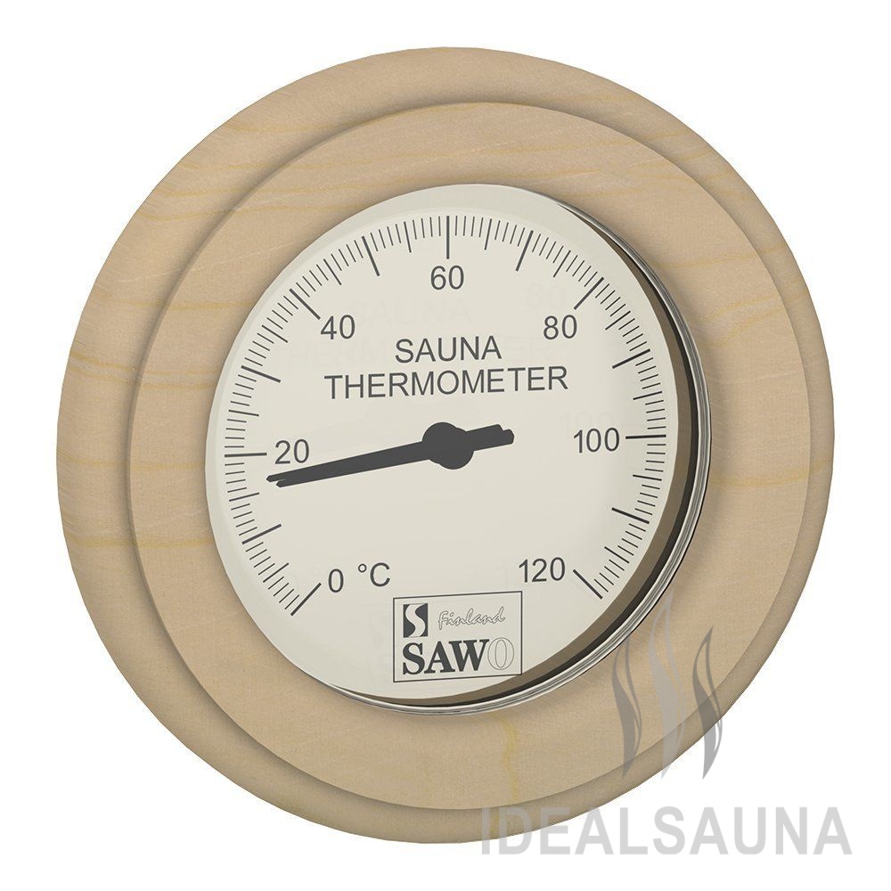 Термометр 230-TD от компании Sawo имеет оригинальную круглую форму. В широкой рамке из древесины кедра находится большой, круглый, графичный циферблат, который сообщит о температуре воздуха. Циферблат защищён жаропрочным стеклом. Данный прибор прекрасно подойдёт для использования в парной. Максимально допустимая для измерения температура составляет 120 градусов Цельсия. Этого максимума достаточно для комфортных банных процедур. Нагнетание в парном помещении большей температуры нежелательно, так как может быть опасным для здоровья. Благодаря универсальному дизайну термометр станет прекрасным дополнением любого интерьера. В нашем интернет-магазине представлен широкий ассортимент измерительных приборов в корпусах из разных видов древесины. Вы можете купить по привлекательной цене модель 230-TD или присмотреться к другим вариантам.