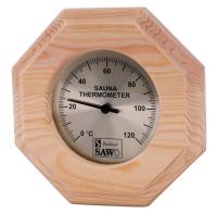 Термометр 240-TР от компании Sawo имеет оригинальную форму равностороннего восьмигранника. В широкой рамке из древесины сосны находится большой, круглый, графичный циферблат, который сообщит о температуре воздуха. Данный прибор прекрасно подойдёт для использования в парной. Максимально допустимая для измерения температура составляет 140 градусов Цельсия. Этого максимума достаточно для комфортных банных процедур. Нагнетание в парном помещении большей температуры нежелательно, так как может быть опасным для здоровья. Благодаря универсальному дизайну термометр станет прекрасным дополнением любого интерьера. В нашем интернет-магазине представлен широкий ассортимент измерительных приборов в корпусах из разных видов древесины. Вы можете купить по привлекательной цене модель 240-TР или присмотреться к другим вариантам.
