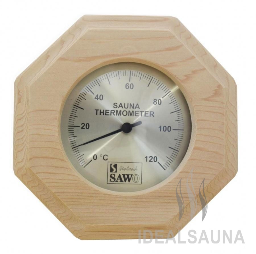 Термометр 240-TР от компании Sawo имеет оригинальную форму равностороннего восьмигранника. В широкой рамке из древесины сосны находится большой, круглый, графичный циферблат, который сообщит о температуре воздуха. Данный прибор прекрасно подойдёт для использования в парной. Максимально допустимая для измерения температура составляет 140 градусов Цельсия. Этого максимума достаточно для комфортных банных процедур. Нагнетание в парном помещении большей температуры нежелательно, так как может быть опасным для здоровья. Благодаря универсальному дизайну термометр станет прекрасным дополнением любого интерьера. В нашем интернет-магазине представлен широкий ассортимент измерительных приборов в корпусах из разных видов древесины. Вы можете купить по привлекательной цене модель 240-TР или присмотреться к другим вариантам.