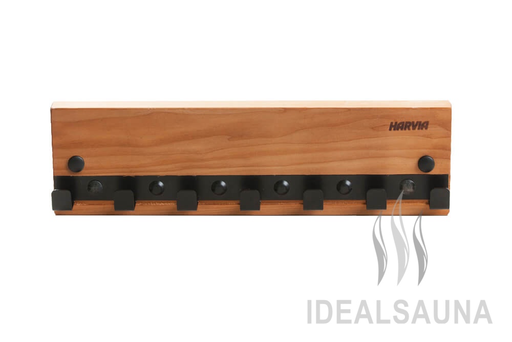Harvia Вешалка позволяет аккуратно разместить необходимые вещи при посещении сауны. Все изделия серии отличает сочетание коричневого и черного цветов и обилие элементов, напоминающих металлические заклепки, которые использовались при создании самолетов. Для создания завершенного интерьера, выдержанного в едином стиле, можно использовать одновременно несколько аксессуаров, входящих в эту серию.