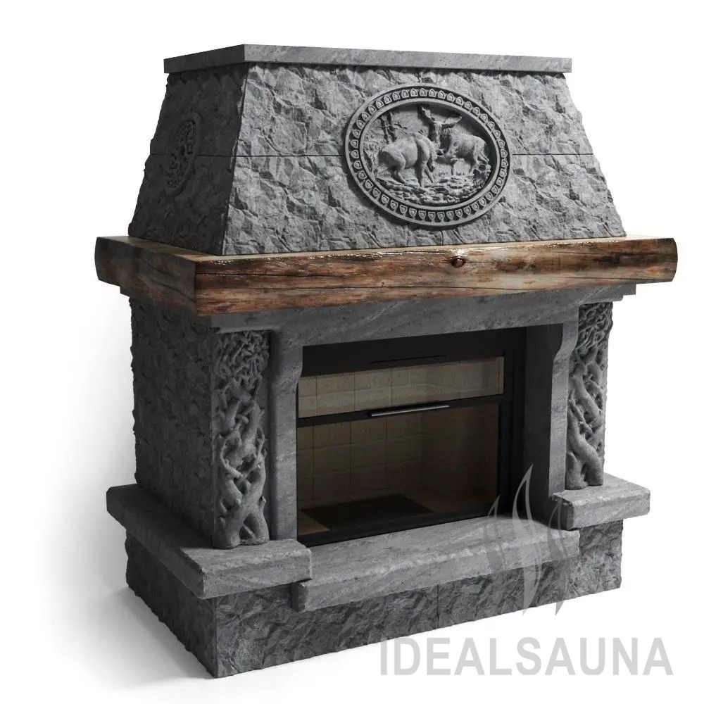 Материал внешней облицовки камина – Бразильский Талькомагнезит, толщиной до 100мм.