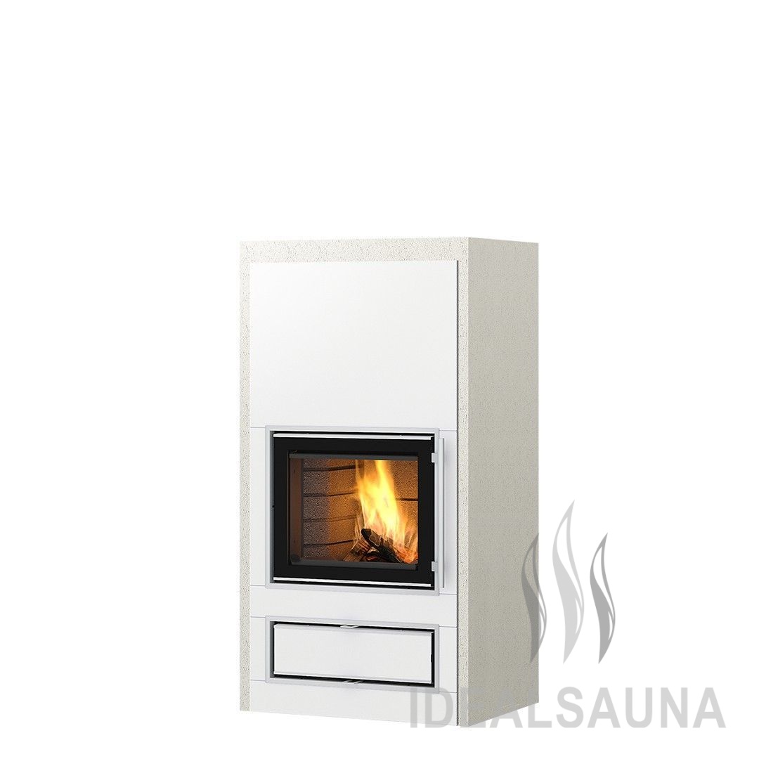 Jaani V2 - стильный современный керамический камин с эффектной комбинированной поверхностью (штукатурка, частично облицованная плиткой). Камин может быть выполнен в трёх вариантах высоты и с многочисленными вариантами подключения к дымоходу (нижнее/верхнее/верхнее боковое/верхнее заднее подключение). В топке печи-камина Jaani V2 можно готовить после прогорания дров.