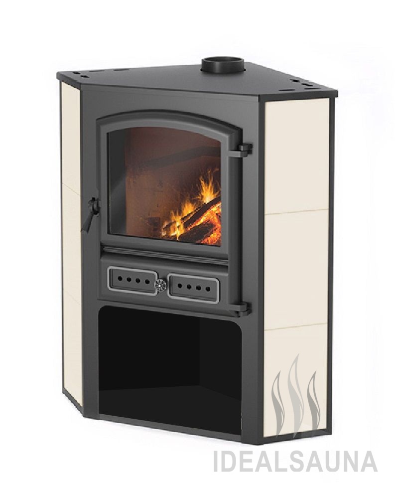 Печь-каминв ключает в свою конструкцию топочную камеру с поддувалом и дымосборником, а также дополнительные боковые стенки, облицованные керамическими плитками чёрного или бежевого цвета. При этом топка располагается в верхней части печи-камина, а нижняя свободная часть может быть использована в качестве дровника.