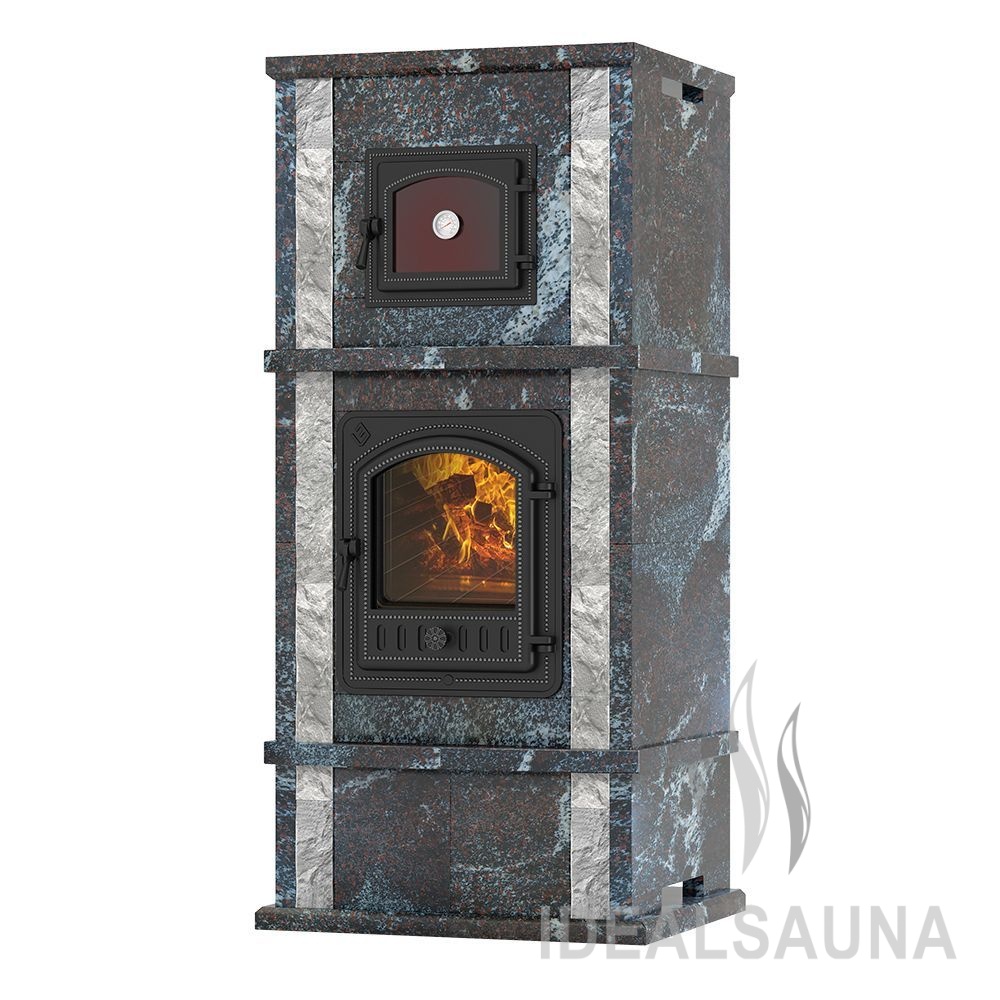 Корпус печи сделан из природного камня талькохлорит. Он обладает высокой теплоемкостью и остывает около 5-8 часов. Протопив печь с вечера, тепла вам может хватить до самого утра.