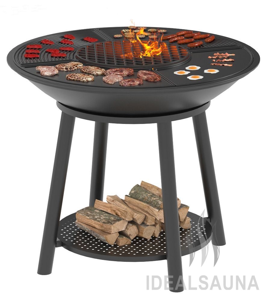 Чугунная Костровая чаша Fantastic Ø 700. Чугунная плита Gurman Ø700. Решетка чугунная круглая "СТЕЙК" Ø 314мм. Стальная крышка. Подставка Престиж. |