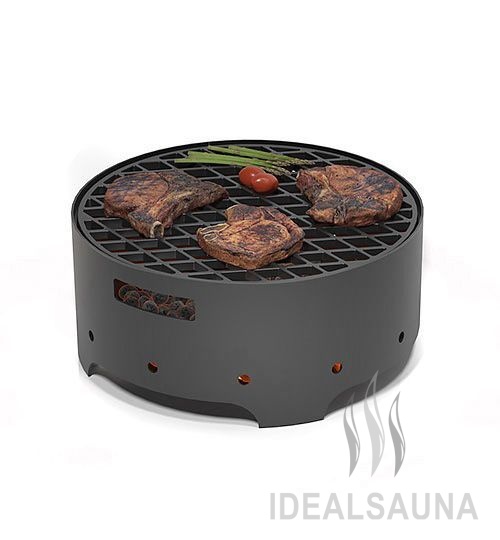 Мангал Дачник, изготовленный из конструкционной стали толщиной 2 мм, имеет круглую форму. Он предназначен для совместного использования с Решеткой гриль чугунной Везувий Ø 450 мм. Диаметр мангала – 458 мм, высота – 200 мм.