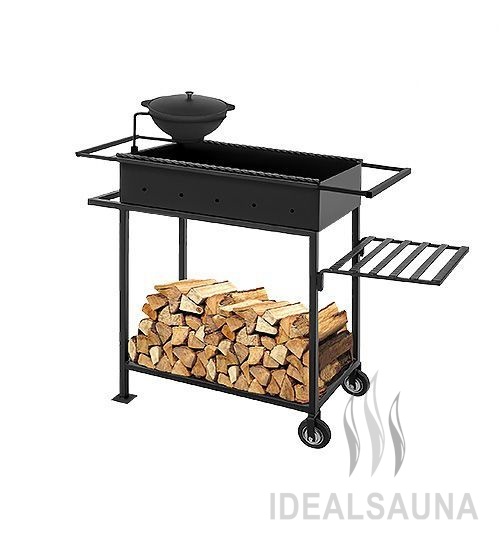 Для удобства перемещения мангала по садовому участку конструкция оснащена колёсами. Пара колёс расположена с короткой стороны мангала и позволяет без особых усилий передвигать мангал.