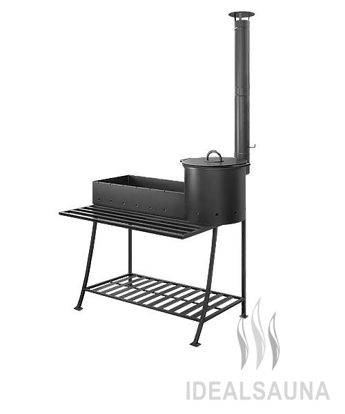 Мангал "Надежный Плюс" получил свое название из-за того, что произведен из 6мм котловой стали, покрытый термостойкой кремнийорганической эмалью, также особенностью мангала является печь под казан с высокой вытяжной трубой самоварного типа. На мангале можно одновременно готовить пищу на шампурах и в казане. Так как мангал стационарный для защиты от осадков в комплекте поставляется крышка для мангальной вставки и печи под казан. Первое использование; Перед использованием мангала по назначению необходимо закрепить покрытие – обжечь в течение 30 минут Внимание! Покрытие – термостойкая кремнийорганическая эмаль – набирает прочность только после первого обжига. При обжиге возможно дымление и испарение растворителя, оставшегося в эмали.