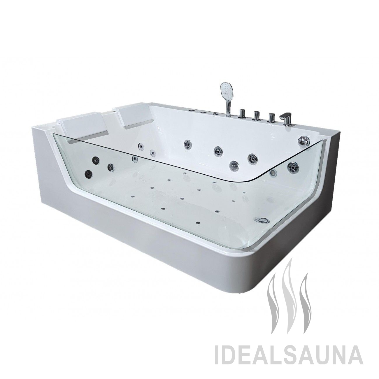 Все гидромассажные ванны Frank поставляются в максимальной комплектации и имеют множества функций. Ванна с гидромассажем Frank F107R правая, с аэромассажем, гидромассажем, турбомассажем. В боковой стенке установлен звёздный дождь-хромотерапия. Также ванна снабжена системой дезинфекции. Форсунки расположены в ванне с учётом эргономики тела и способствуют максимальному охвату поверхности тела при работе аэро- и гидромассажных двигателей. Используется высокопрочное стекло 10 мм., с антибактериальным покрытием без металлической окантовки, что придаёт ванне современный дизайн. Стоит система слива остатков воды из форсунков. Идеально подходит для совместных водных процедур с любимым человеком. Уникальный дизайн ванны с прозрачными стеклянными боковыми стенками.