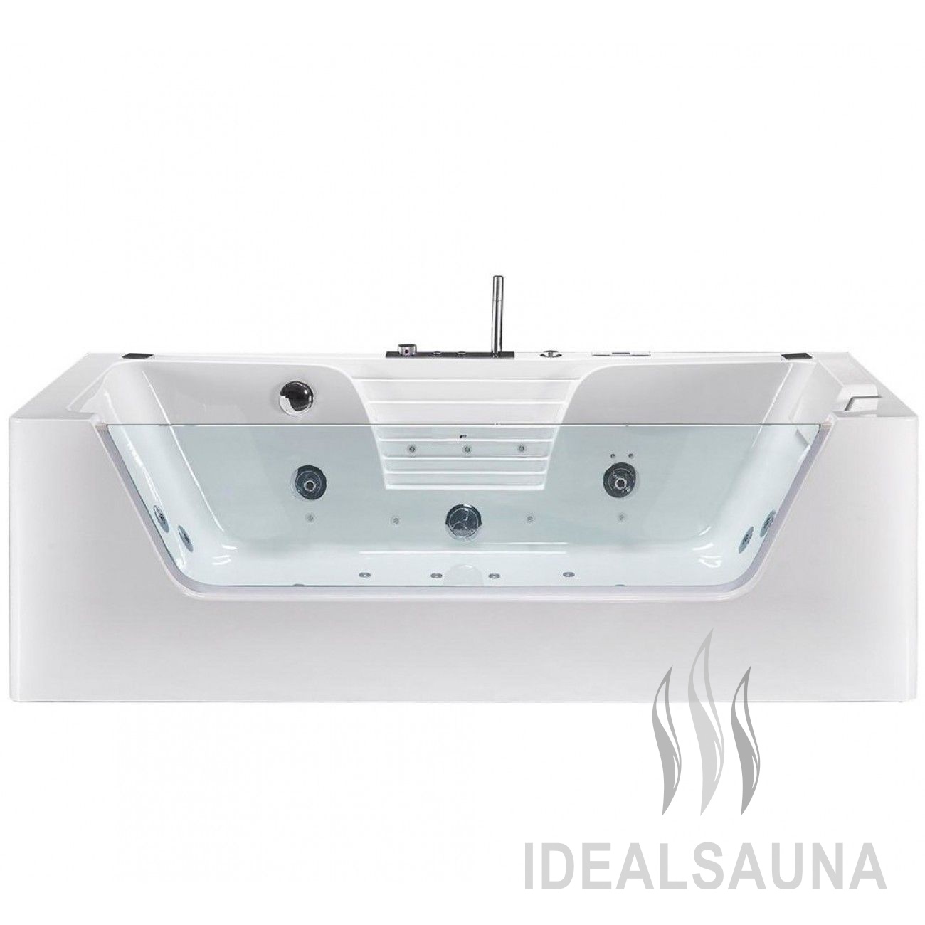 Все гидромассажные ванны Frank поставляются в максимальной комплектации и имеют множества функций. Ванна с гидромассажем Frank F150 пристенная, прямоугольная с аэромассажем, гидромассажем, турбомассажем. Также ванна снабжена системой дезинфекции. Форсунки расположены в ванне с учётом эргономики тела и способствуют максимальному охвату поверхности тела при работе аэро- и гидромассажных двигателей. Вся ванна сделана из литьевого акрила. Передний и боковые экраны сделаны единой конструкцией с ванной. Стоит система слива остатков воды из форсунок. Лицевая стенка изготовлена из 10мм закалённого стекла. Ванна имеет 2 каскадных налива воды с точечной подсветкой 5 цветов.