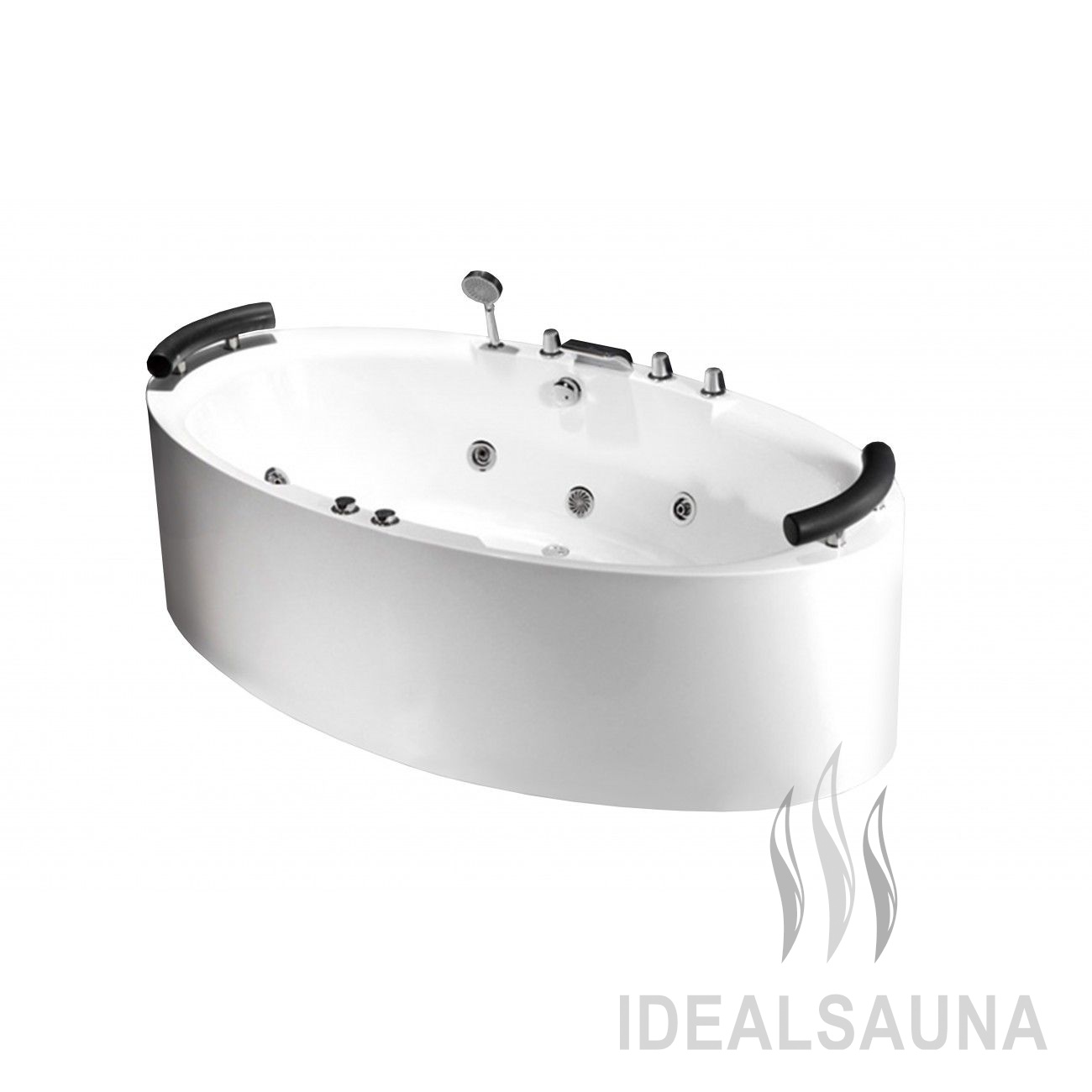 Ванна с гидромассажем Frank F163 овальная. Красивая, удобная и просторная гидромассажная ванна с двумя подголовниками . В боковой стенке установлен многоцветный звёздный дождь-хромотерапия с фиксацией цвета. Форсунки расположены в ванне с учётом эргономики тела и способствуют максимальному охвату поверхности тела при работе гидромассажного двигателя. Вся ванна сделана из литьевого акрила. Овальный экран сделан единой конструкцией с ванной. Стоит система слива остатков воды из форсунок. Идеально подходит для совместных водных процедур с любимым человеком.