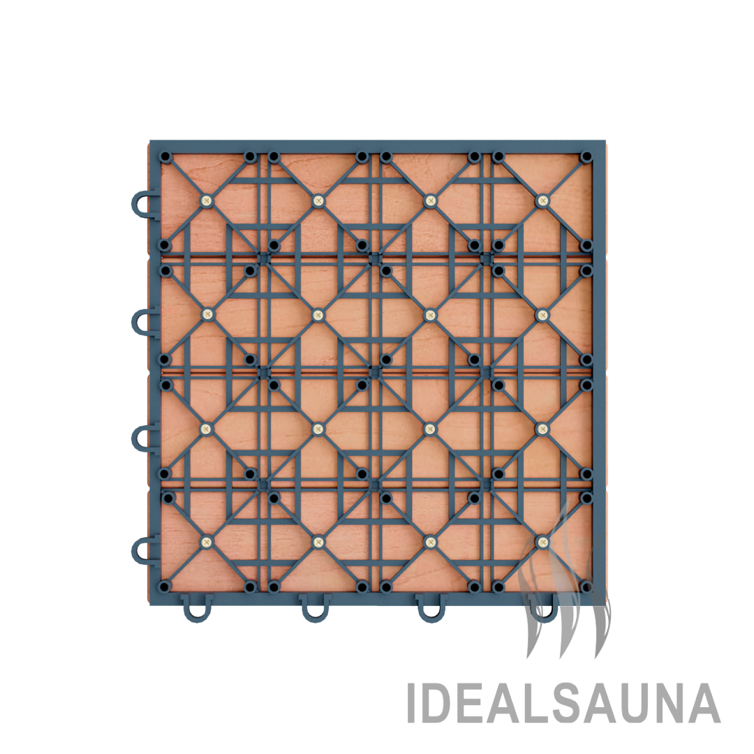 Лаконичные параметры (длина — 30 см, ширина — 30 см) и удобное соединение отдельных модулей друг с другом (элементы скрепляются по типу пазла) позволяют легко уложить покрытие самостоятельно. Вы можете составить дорожки и настилы той конфигурации, которая будет оптимально соответствовать параметрам помещения или участка.