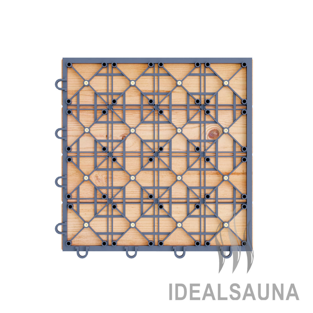 В комплектацию входят 9 плиток 30х30 см. Высота основания из ПНД — 1,5 см, древесной планки — 1,8 см.