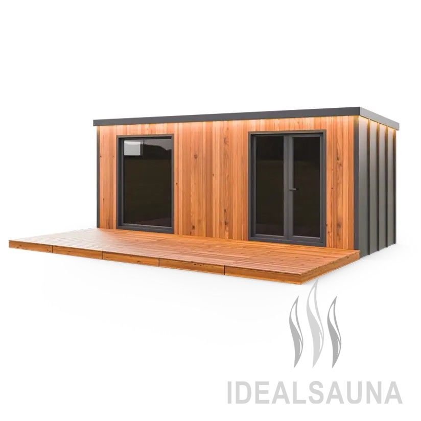 Модульная баня М6 с электрической или дровяной печью на выбор, созданная для загородного участка.