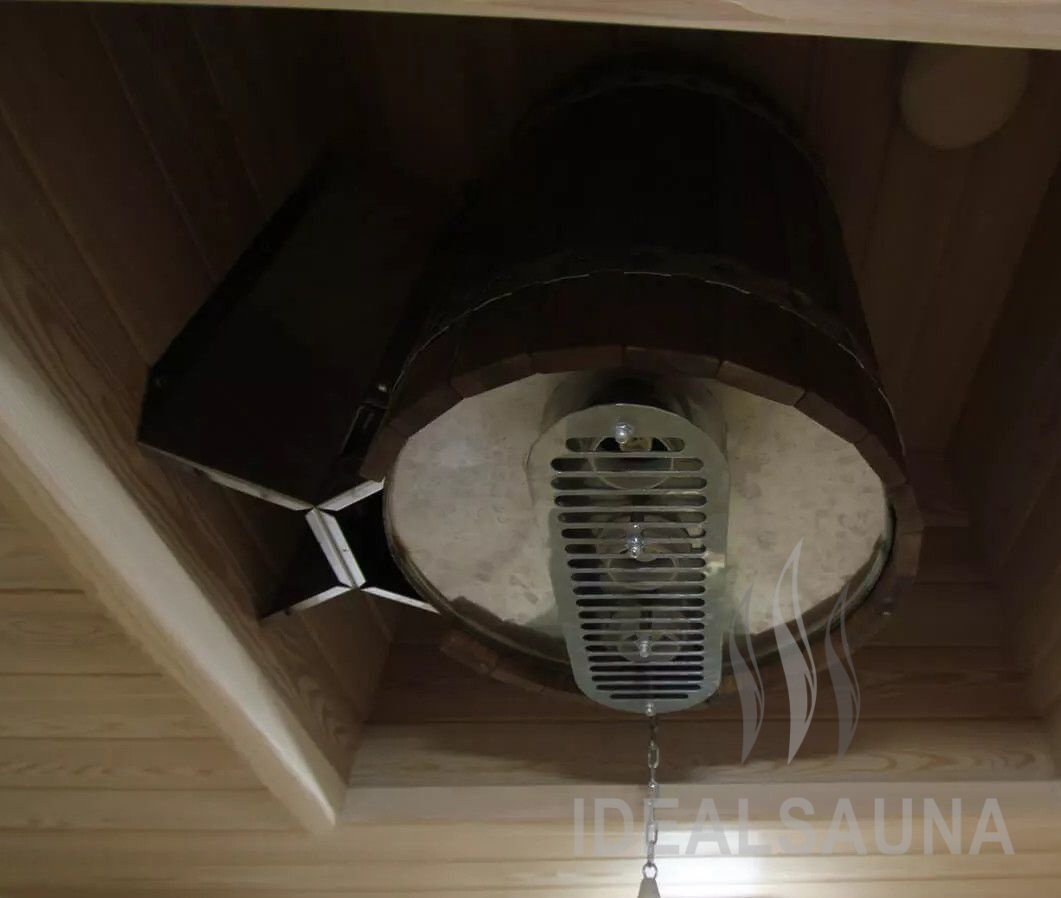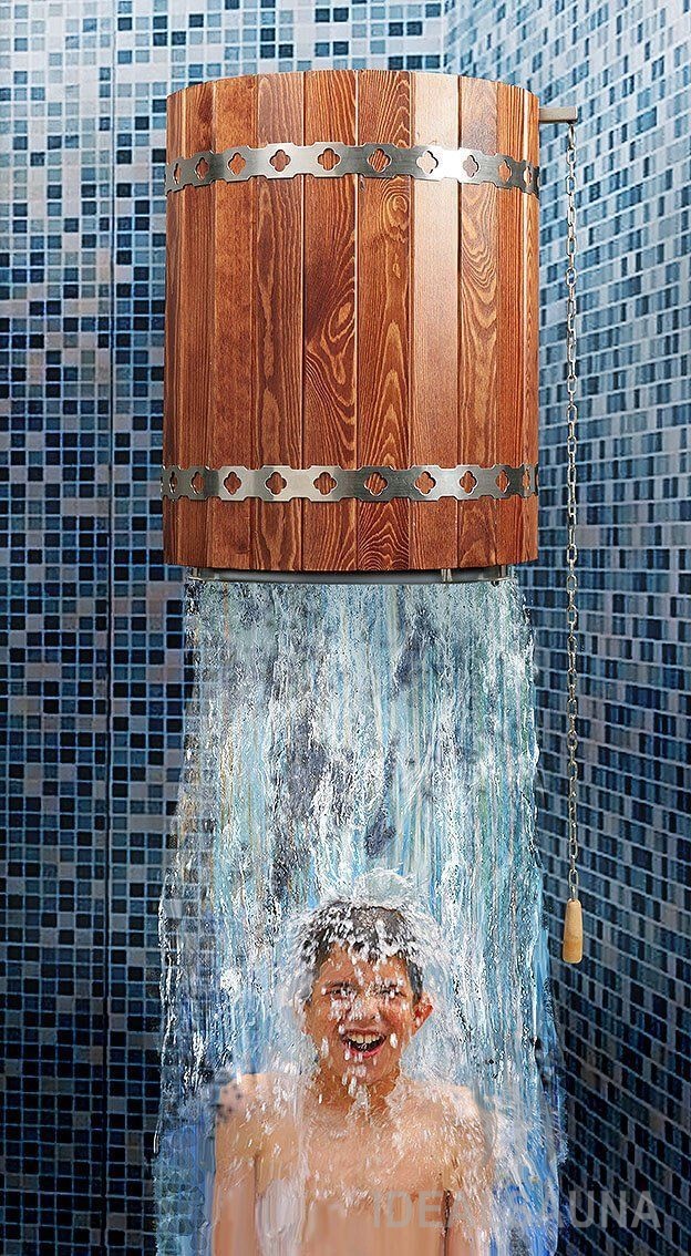 У обычных обливных ведер объем воды составляет 10-12 литров, что явно недостаточно для эффективного и единовременного охлаждения тела. В результате возникает дисбаланс между разогретыми и охлажденными его участками. В обливном устройстве «Ливень» запас воды составляет 50 литров, что эффективно позволяет охладить тело после самого интенсивного парения. Специальный рассекатель формирует поток изливающейся воды таким образом, чтобы полностью охватить тело человека и охладить его.
