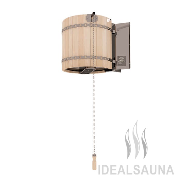 У обычных обливных ведер объем воды составляет 10-12 литров, что явно недостаточно для эффективного и единовременного охлаждения тела. В результате возникает дисбаланс между разогретыми и охлажденными его участками. В обливном устройстве «Ливень» запас воды составляет 50 литров, что эффективно позволяет охладить тело после самого интенсивного парения. Специальный рассекатель формирует поток изливающейся воды таким образом, чтобы полностью охватить тело человека и охладить его.