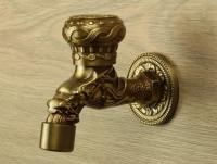 Оригинальный декоративный кран «под бронзу» выполнен в восточном стиле и имеет отделку в виде рельефных узоров. Модель предназначена для горячей или холодной воды, устанавливается на стену.
