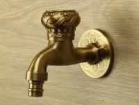 Удобный и нарядный кран из латуни имеет гладкий полированный корпус и поворотный регулятор с рельефной отделкой. Покрытие имитирует бронзу. Монтажное отверстие закрывается специальной шайбой для удобства присоединения шлангов.