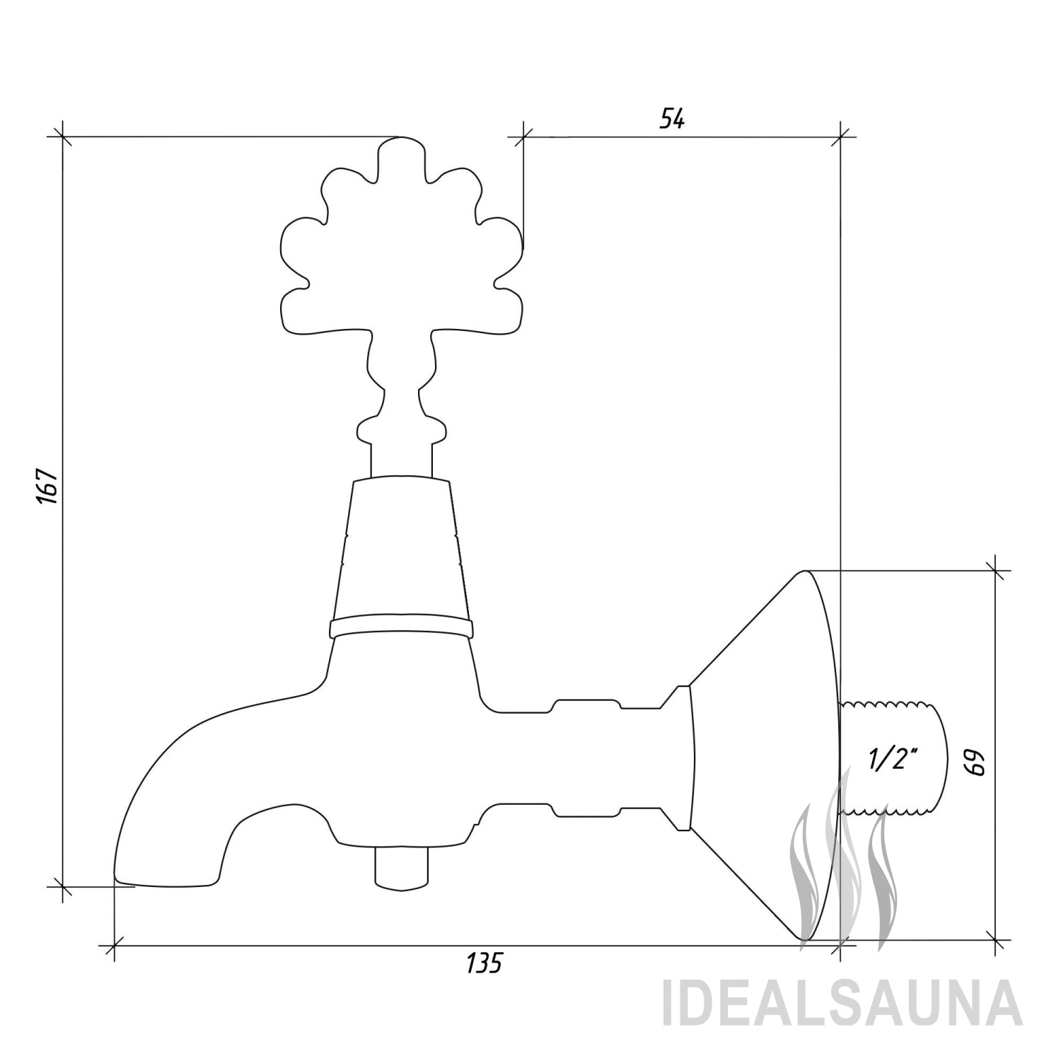 Традиционный восточный (турецкий) кран для хамама, турецкой бани, латунный 003-А (вентиль 3 оборота)