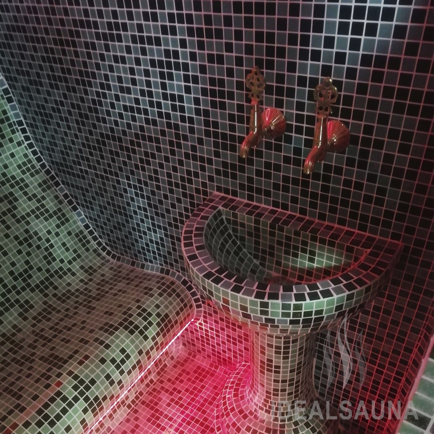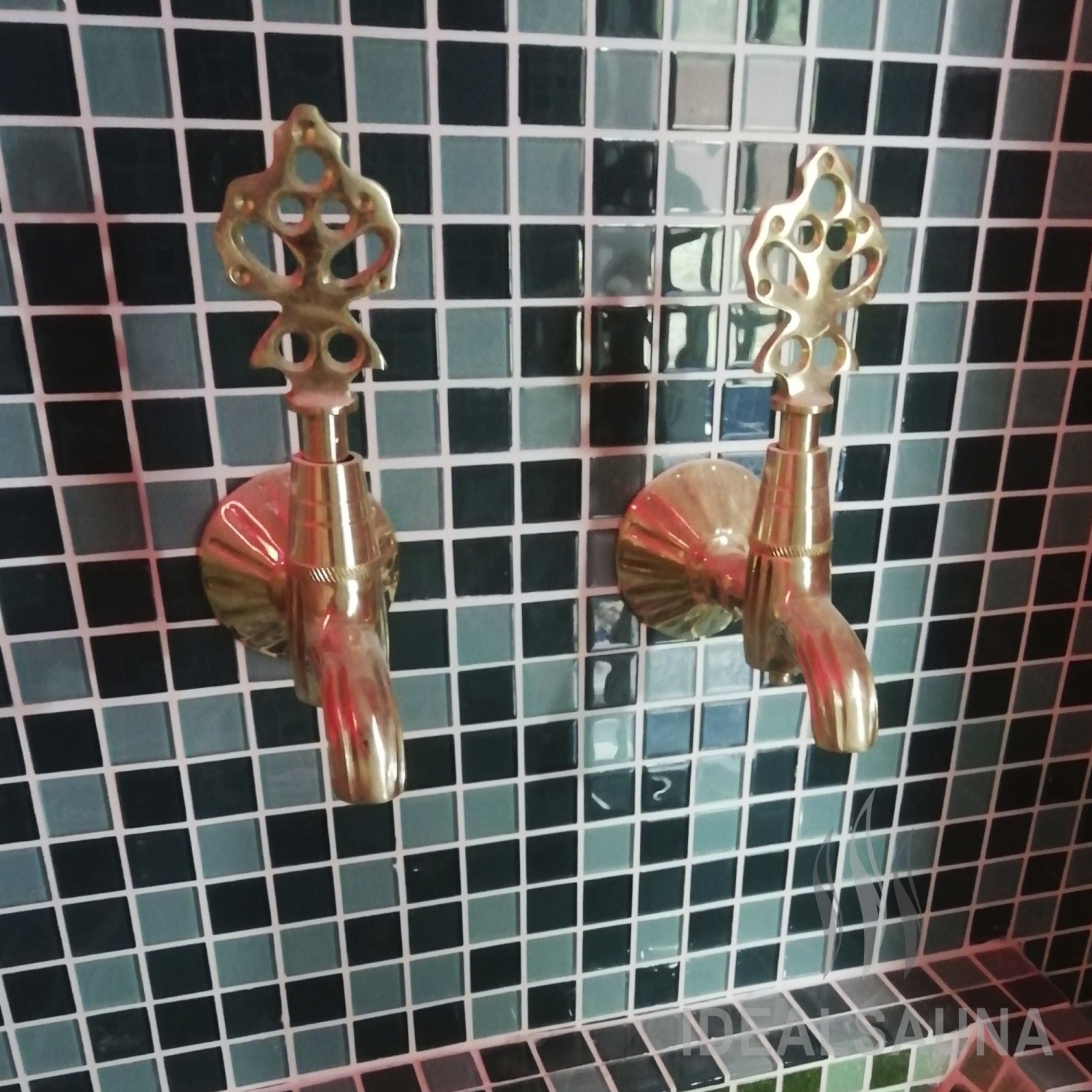 Латунь не деформируется в условиях высокой влажности и перепада температур. Из этого материала получаются стильные изделия, помогающие создать в хамаме неповторимую атмосферу и придать интерьеру восточные нотки.