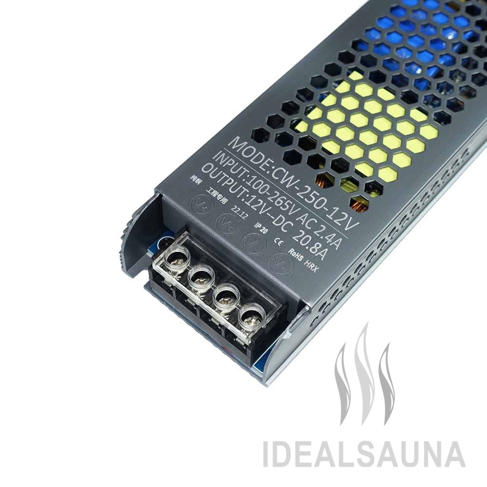 Трансформатор EOS LED IP20 12 В, 250 Вт предназначен для электроснабжения светодиодных линеек, лампочек и прочего оборудования потребляющего электрический ток в турецкой парной. Создатели наградили свое творение высоким уровнем защиты, поэтому он не боится влаги, пыли, а также всевозможных перегрузок, сверх высокого напряжения и перегрева. Они, также, позаботились о том, чтобы устройство имело низкий уровень шума и отсутствие негативного эффекта мерцания. Повышенный коэффициент мощности объясняется высококачественной катушкой, произведенной на современных промышленных мощностях.