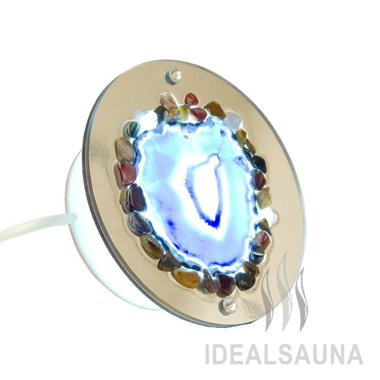 Влагозащищенный светодиодный врезной светильник с плафоном из полудрагоценных камней и кристаллами Swarovski. Потребляемая мощность 3Вт, ток 350мА. Световой поток: холодный белый - 430 Лм, теплый белый - 390 Лм. Блок питания в комплекте.