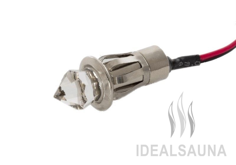 Светодиодный хрустальный рассеиватель. Потребляемая мощность 0,3Вт, напряжение питания 12В. Эффект: автоматическое изменение цвета в градациях красного, синего и зеленого, . Возможные цвета корпуса: хром, золото, медь.
