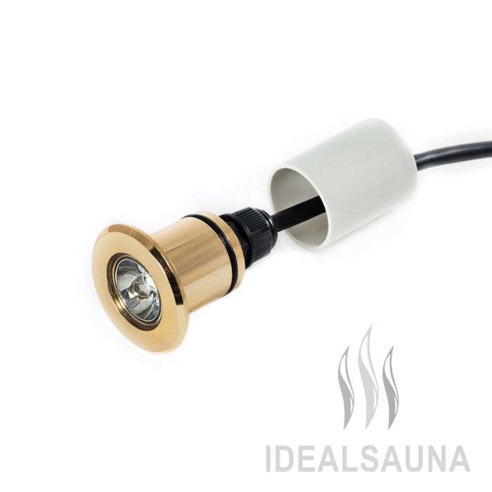 Мощный узконаправленый светодиодный светильник со специальным покрытием корпуса и высшей степенью защиты от воздействия окружающей среды (IP 68). Потребляемая мощность 1,1Вт, ток 350мА. Световой поток: холодный белый - 141 Лм, теплый белый - 132 Лм. Возможные цвета корпуса: хром, золото, медь. Возможна установка светодиодов любого цвета на заказ.