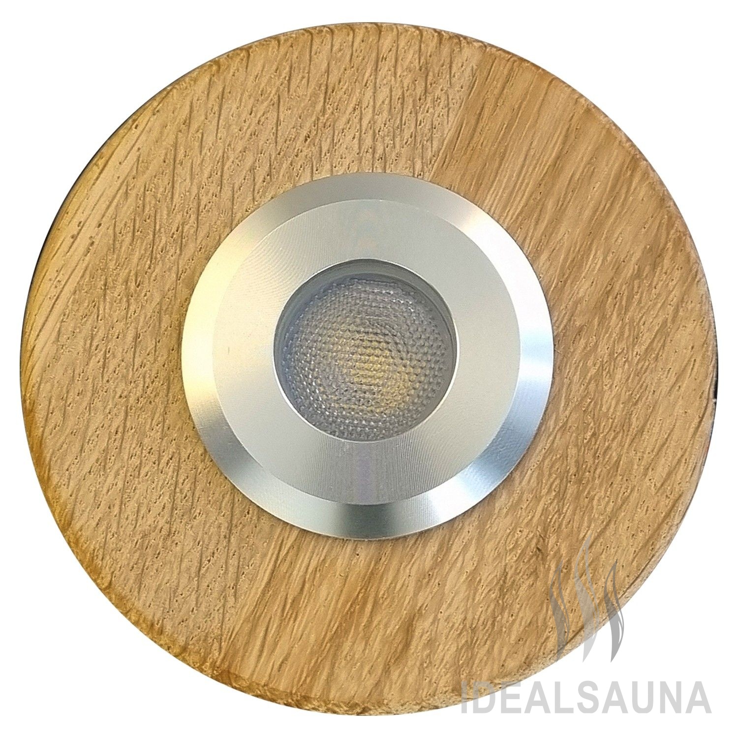 Точечный светильник для бани, сауны и хамама Steam&Water (цвет алюминий + дубовая накладка)