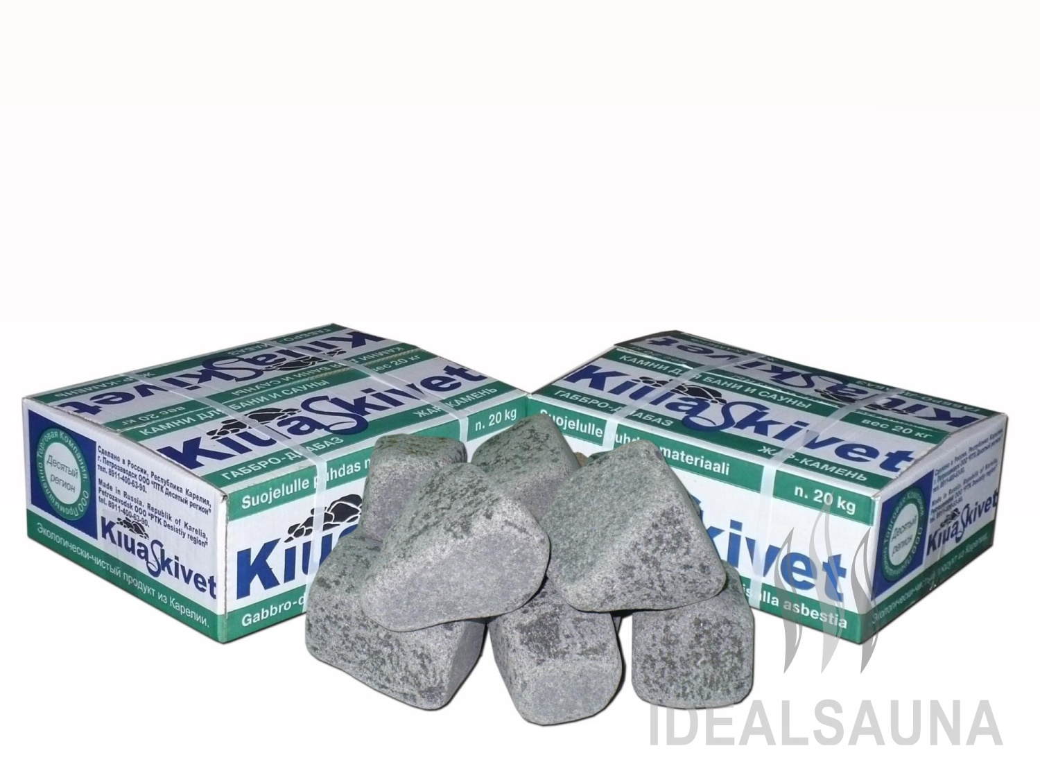 Габбродолерит (изготовлен в соответствии с ГОСТ 8267-93) — вулканический камень с высокой теплоемкостью. Отличительная особенность габбродолеритового камня заключается в низкой гигроскопичности. Популярен среди любителей бани. Причина этому — хорошие характеристики и низкая цена.