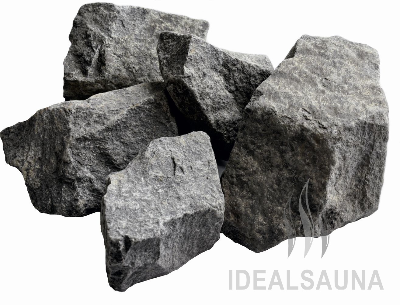 Камень габбро-диабаз – экологически чистая горная порода, не имеющая неоднородностей и окрашенная в черный цвет. Этот камень для бани отлично аккумулирует тепло в печах и при поливе водой дает высокотемпературный влажный пар. Камень устойчив к износу и обладает низкой водопоглощаемостью. При высокой температуре и частых обливаниях водой он не трескается. Но лучше временами его обновлять, так как на нем образуется нагар от использования эликсиров и настоев.