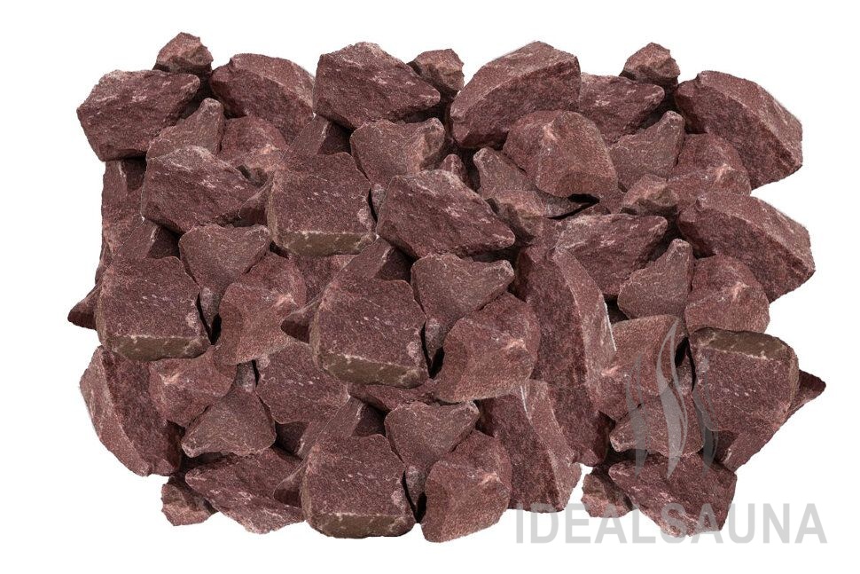 Малиновый кварцит — экологический чистый, долговечный и необычайно прочный материал. Данный минерал состоит из кварца более чем на 95%. Редчайший и дорогой минерал, добывается только в Карелии. Имеет такие свойства, как значительная теплоемкость и большая твердость, благодаря чему создает мягкий приятный пар и продолжительное время поддерживает высокую температуру. Выдерживает температуру до 1600 градусов, поэтому является подходящим материалом для каменок.