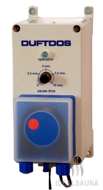 Необходимо таким образом подключить Duftdos, чтобы аромат поступал только в том случае, если запущен парогенератор. Максимальный объем дозирования - 3 л/час. Опционально насос можно подключить через "сухой контакт" к кнопке в парной.