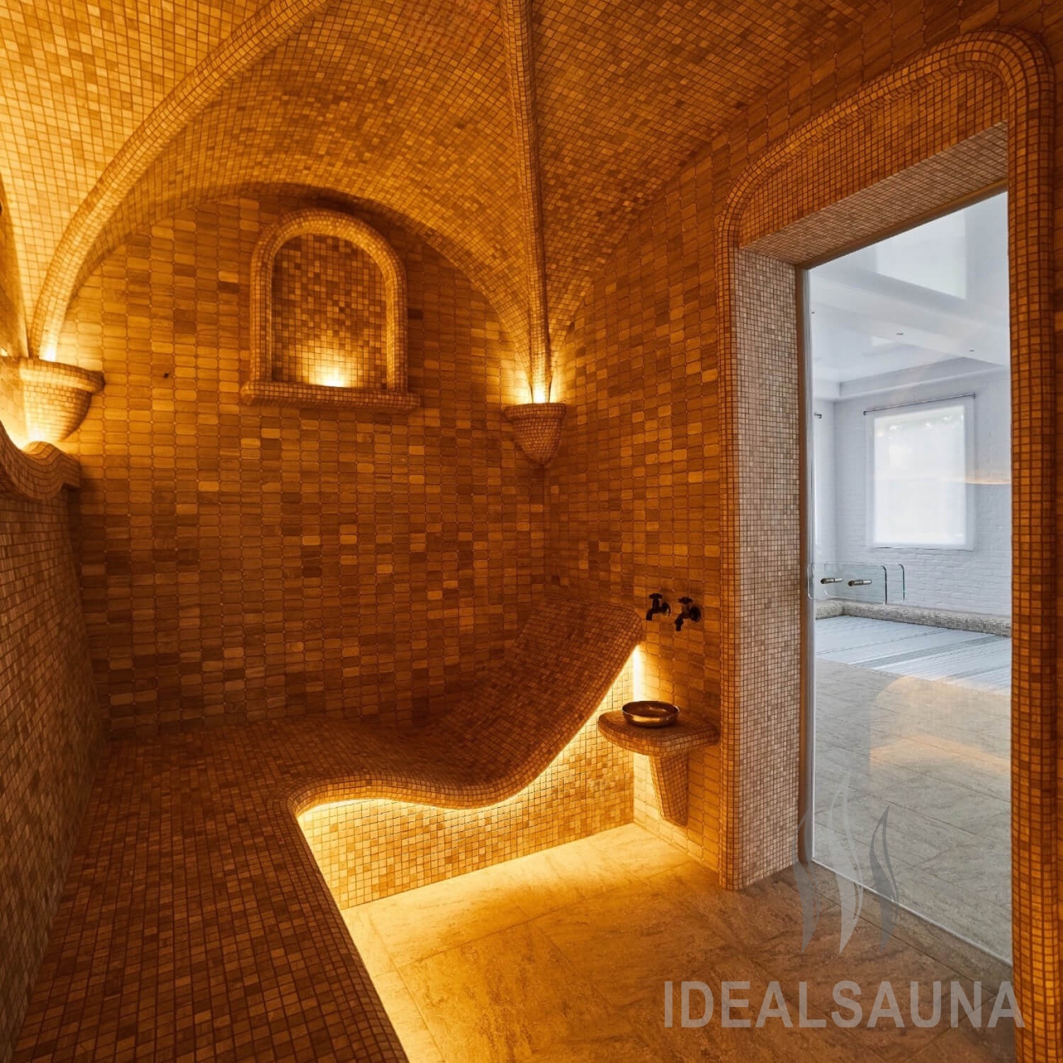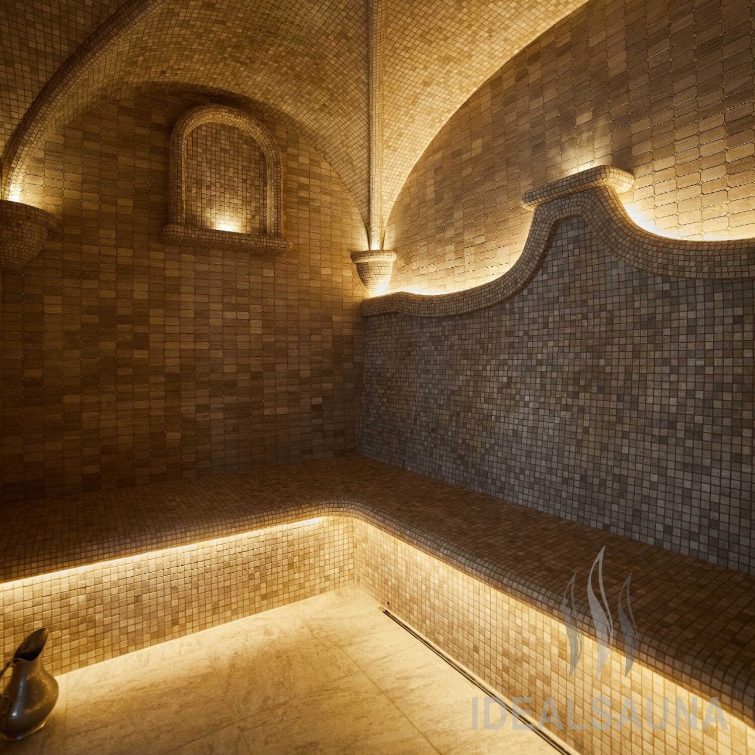 В два раза больше впечатлений. Теперь в хаммам не только холодный туман, но еще и теплый дождь. А также две станции ароматизации и управление парогенератором.