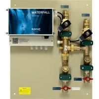 Единая монтажная панель в сборе, включающая: контроллер управления форсунками, музыкой, светом, комплект запорных кранов и фильтров, кнопка управления с светодиодной индикацией выбранной программы и интеллектуальным меню, 3 программы в памяти. Управление двумя независимыми форсунками водопада. Гарантия на оборудование 2 года (1 год для коммерческого использования). Питание 220v/50Hz 100W, вода 2 х 3/4’’ ВР, 3 атм, 90 л/мин , размер ШхВхГ (мм) 600х600х170 , вес 9.5 кг