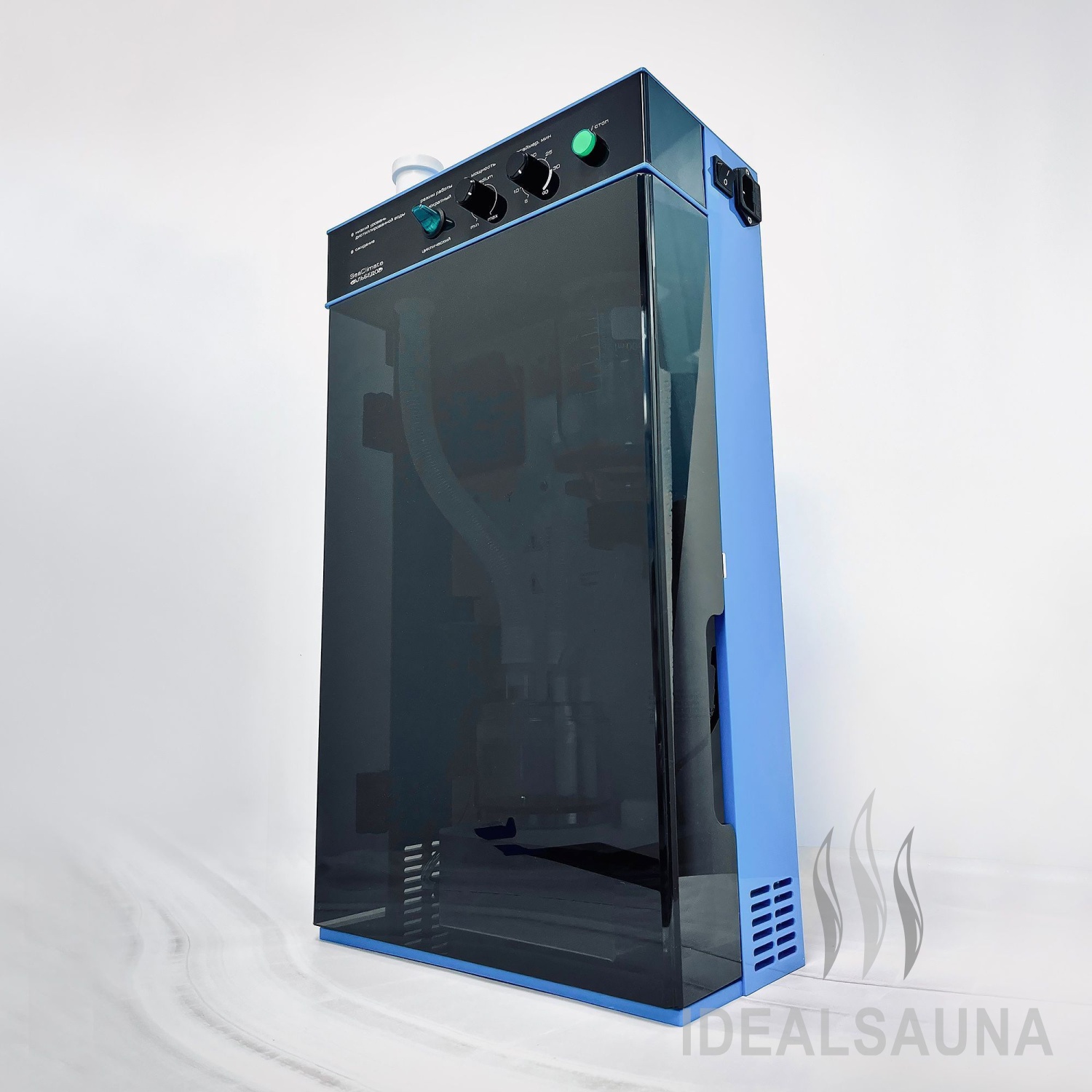 От установки до запуска всего два действия: заполните колбу автоматического дозатора соляным раствором и нажмите кнопку – прибор готов к работе! Запуском можно управлять как из кабины оператора, так и дистанционно непосредственно из галокамеры, соляной пещеры, хамама или бани - кнопка надежно защищена от влаги (IP68) и абсолютно безопасна.