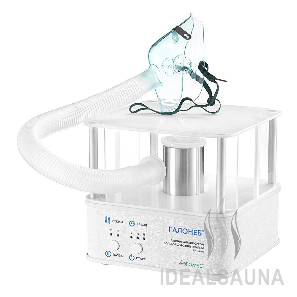 Галоингалятор ГИСА-01 (Галонеб™) предназначен для проведения галоингаляционной терапии органов дыхания с помощью сухого высокодисперсного аэрозоля хлорида натрия, моделирующего лечебный микроклимат соляной пещеры. По мере вдыхания соляного аэрозоля, который формируется внутри аппарата, мельчайшие частицы соли, обладающие отрицательным зарядом, оседают на стенках органов дыхания. Благодаря уникальным физико-химическим свойствам сухого солевого аэрозоля, в организме пациента запускаются естественные процессы очищения, восстановления и защиты органов дыхания, за счёт следующих действий аэрозоля: