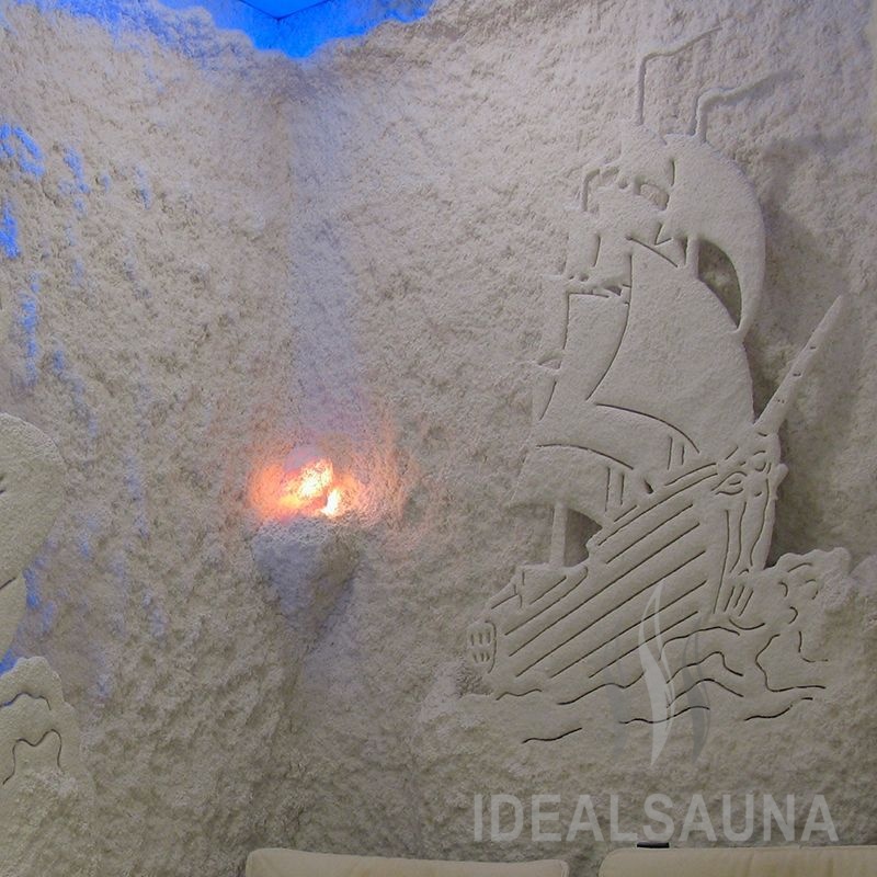 Этот вариант оформления соляной пещеры (галокамеры) (на базе медицинского аппарата «Галобриз») предпочитают Заказчики, которые хотят, чтобы их учреждение выгодно отличалось от других. Дизайн галокамеры «ЭКСКЛЮЗИВ» - нанесение на стены и пол многослойного соляного покрытия из рассыпной природной каменной соли, декорирование помещения объемными пристенными (угловыми) конструкциями, соляными светильниками и оформление галокамеры «мягкой» декоративной подсветкой - должен удовлетворить самого строгого и требовательного Заказчика. По желанию Заказчика могут быть выполнены работы по оформлению потолка (микросталактиты или натяжной потолок). Система видеонаблюдения поможет осуществлять наблюдение за пациентами во время сеанса. Для очистки воздуха в Галокамере устанавливается воздухоочиститель. Галокамера «ЭКСКЛЮЗИВ» позволяет проводить одновременно полноценные сеансы галотерапии и сеансы релаксации (отдыха), так как атмосфера в рукотворной соляной пещере располагает к отдыху и расслаблению. Декоративные элементы, мягко подсвеченные соляными лампами и светодиодными шнурами, необычный рельеф стен, покрытых солью, спокойная музыка, удобные кресла повышенной комфортности - все это позволит забыть о том, что пациенты находятся в медицинском учреждении.
