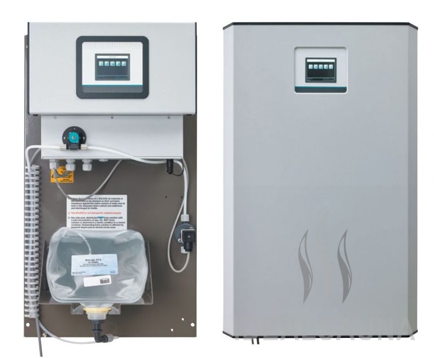 Соляная дозирующая станция или соляной генератор, предназначен для создания морского климата и его контроля в парных помещениях и паровых кабинах. Аппарат оснащён системой дозировки солёного воздуха и мощным встроенным насосом, который работает практически в бесшумном режиме.