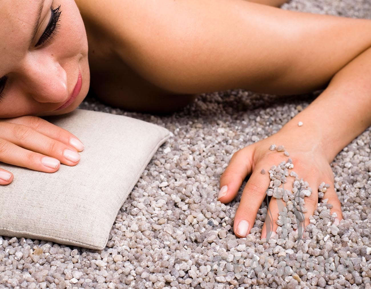 Теплый песок прекрасно снимает мышечное и нервное напряжение, подготавливая тело к массажной процедуре