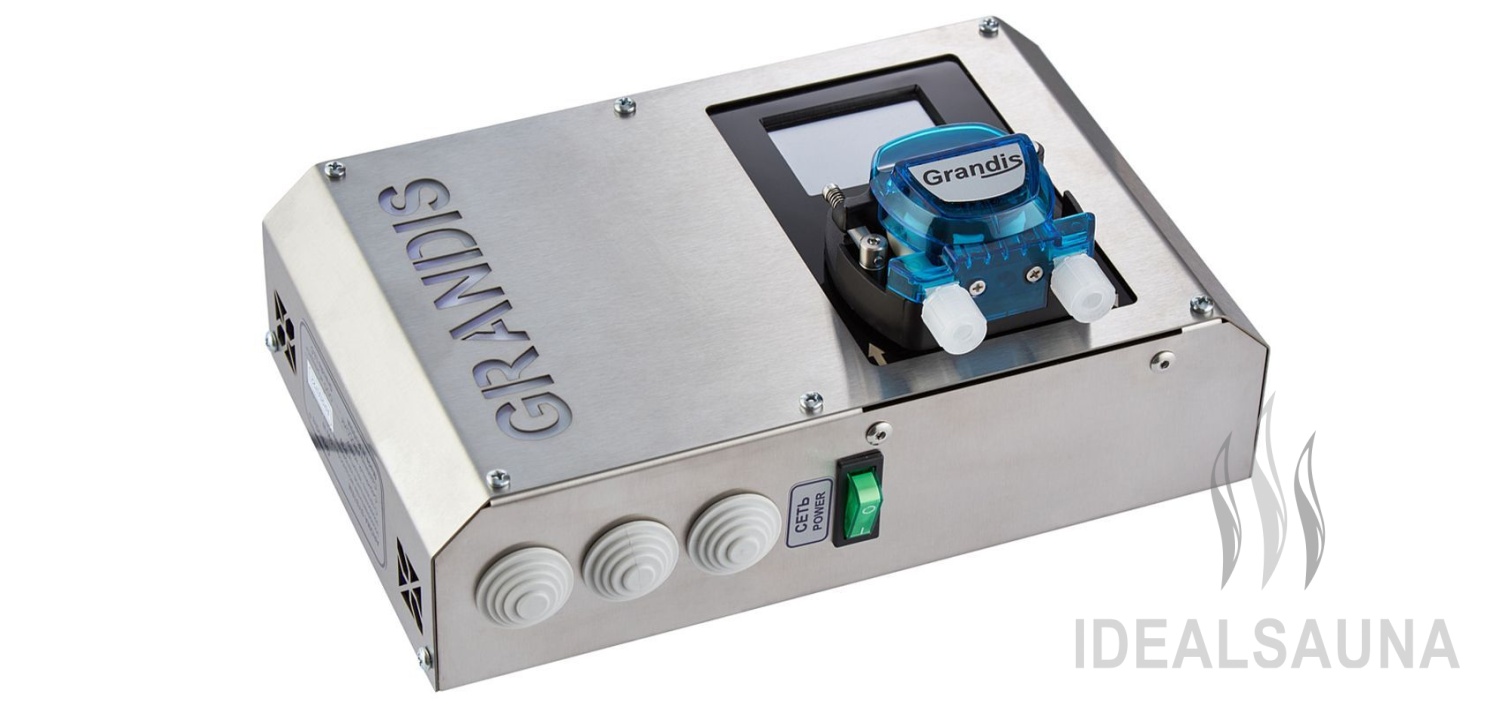 Диспенсер ароматов Grandis AROMA Prime для подачи аромамасла вместе с паром, в систему паропровода, идущий от парогенератора к хамаму.