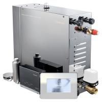 Генератор пара обладает простым управлением через влагостойкую панель с сенсорным экраном, данную панель можно размещать внутри хамама.