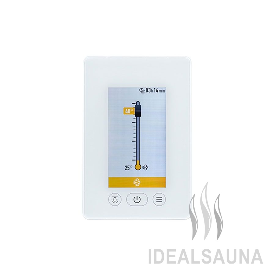 Технологичный немецкий пульт с сенсорным экраном. Управляет паровой или хамамом.