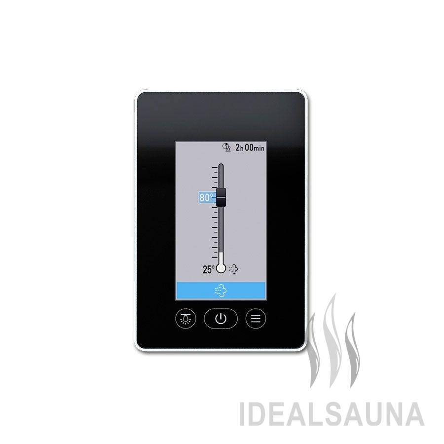 Технологичный немецкий пульт с сенсорным экраном. Управляет паровой или хамамом.